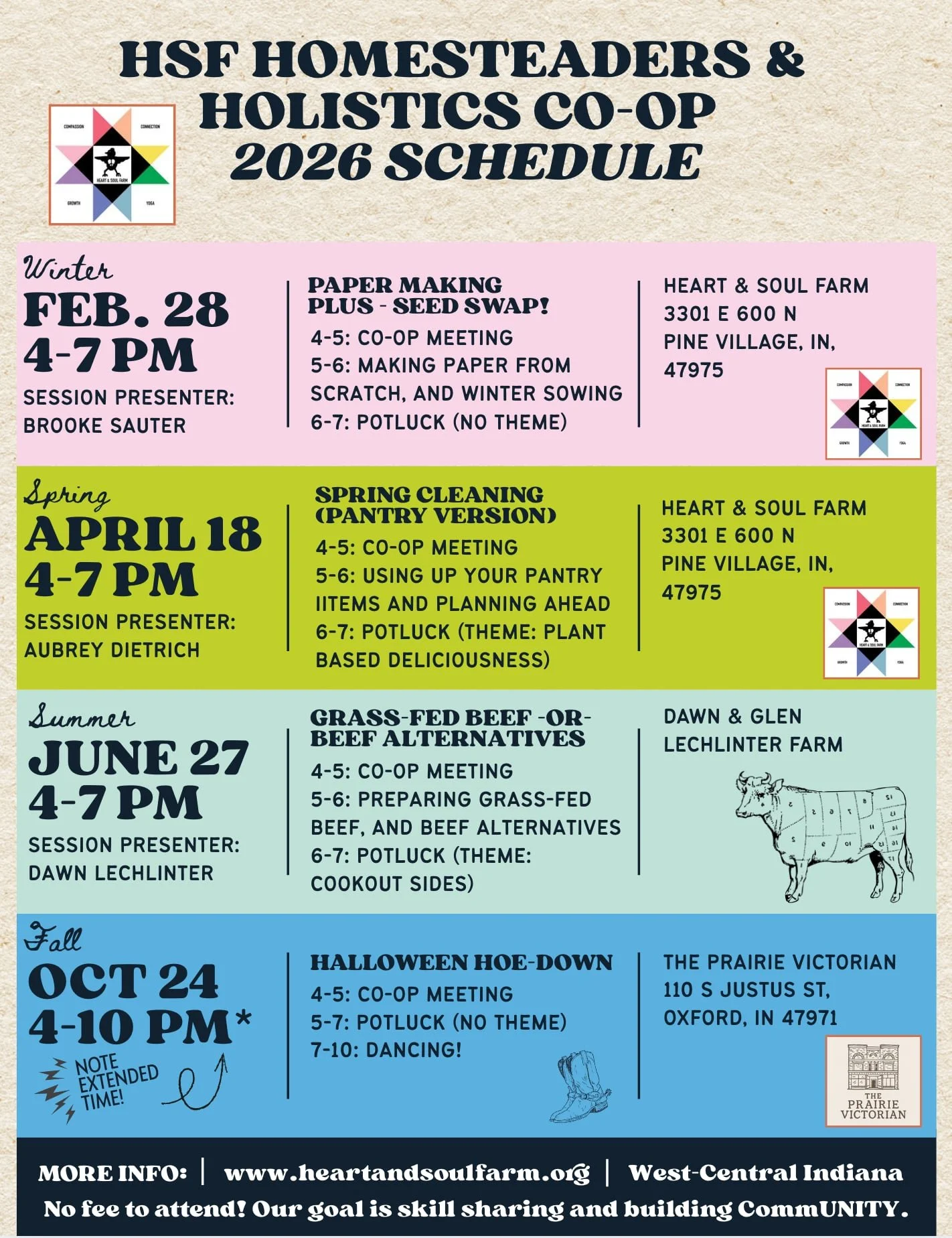 WHAT:A west central Indiana based co-op for homesteaders and homestead-curious individuals, gardeners, small scale conscious farmers, mindul makers & conscious creators, herbalists, reiki facilitators, Ayurvedic healers, chinese medicine , yoga facilitators, acupuncturists, naturopaths, chiropractors and any other type of natural and holistic healing practitioners in our local commUNITY to share their knowledge and support eachother. For me, homesteading and holistic/natural health care is another way I practice yoga, as I feel it allows me to connect on a deeper level with myself, others, and everything and everyone around me, but much like a yoga practice, homesteading and holistic healing is by no means an easy practice or way of life. Many homesteaders and holistic healers are constantly learning and growing in our skills and knowledge, and spending A LOT of money to be able to do it! The purpose of this co-op is for us to be able to share those skills and knowledge with eachother so we can lift eachother up and help our collective homesteads and holistic/natural healing practices thrive and grow. We will have a monthly meeting with a demonstration by one of our members. Snacks welcome…just bring enough to share. Bartering for services or products is highly encouraged at each meeting, but no product sales are allowed, UNLESS you are the monthly demonstrator . There is no signup or membership fee for this co-op Come as you are, share what you wish and are able.